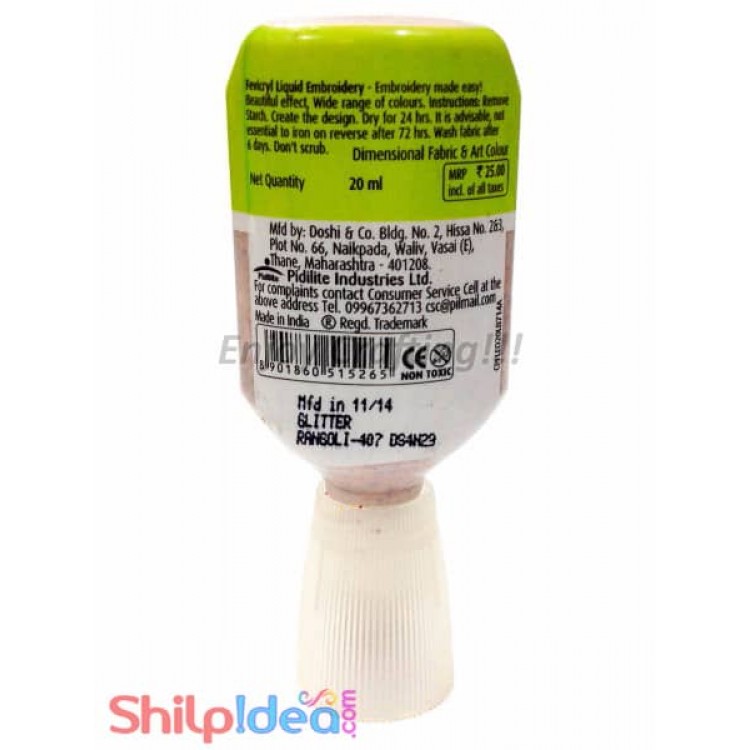 A perfect shiner for use art and craft projects, quilling paper jewelry, terracota projects and jewelry. Color: Transparent after dry Finish: Glossy Finish Quantity: 60 ml Enjoy Crafting!...