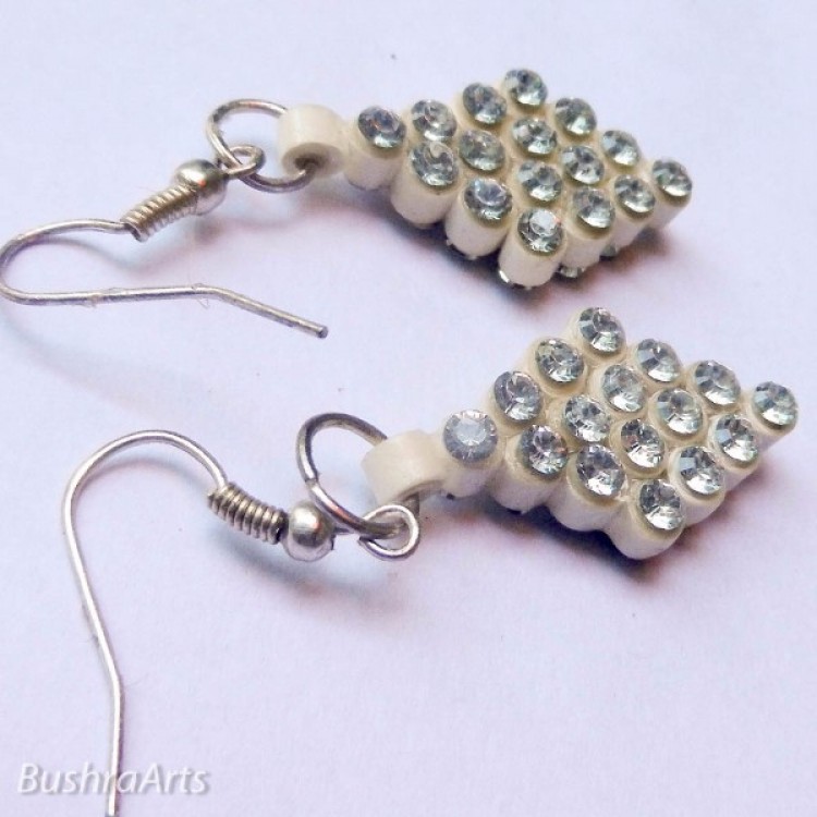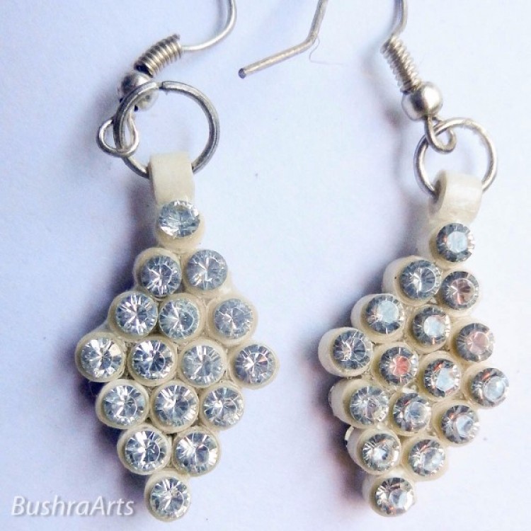 Material Used: Quilling Paper, Silver Polish Earring Hooks, Transparent Glue, Quilling Shiner, Diamond Crystals.