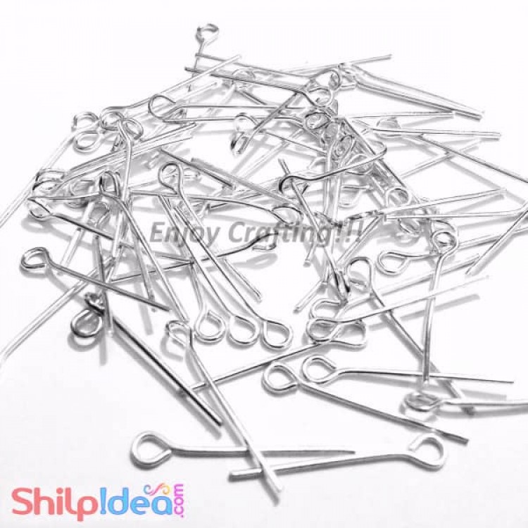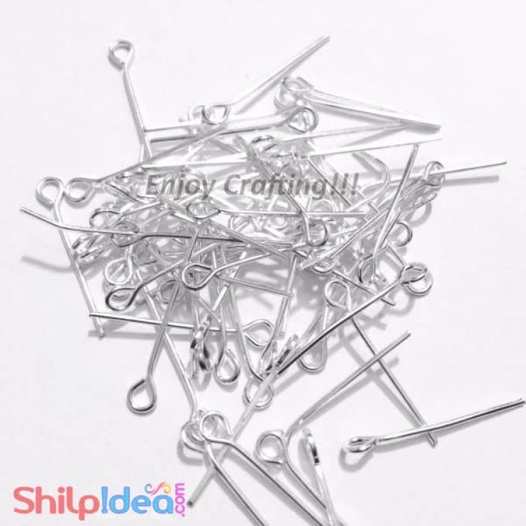 These are fine quality silver finish eye pins ideal for making jewelry earrings and jewelry stuffs. Eye pins feature a loop on one end and can be used to create dangles and pendants, as well, or can be used as links. Both can be finished with simple and wrapped loops.